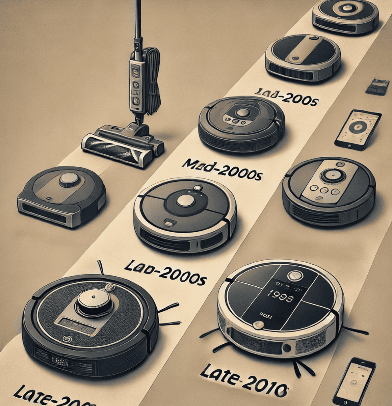 로봇청소기의 개념은 1950년대 공상과학 소설에서 비롯되었습니다. 그러나 실제적인 발전은 1980년대 로봇 기술의 성장과 함께 이루어졌습니다. 1996년, 스웨덴의 일렉트로룩스가 초음파 센서를 활용한 제품을 선보였으나 대중화에 실패했습니다. 하지만 2002년, iRobot의 '룸바'가 시장에 등장하며 합리적인 가격과 실용성을 갖춰 로봇청소기의 표준은 정립하면서부터 로봇청소기가 가정 내 자리 잡는 계기가 되었습니다.